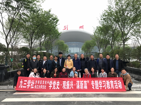 4月10日,九三学社伟德体育支社联合沙市区支社赴沙市区岑河镇开展“学党史·观振兴·谋新篇”专题学习教育活动。本次活动由伟德体育支社主委李征宇和沙市区支社主委方奕带队,共40余名社员参与。