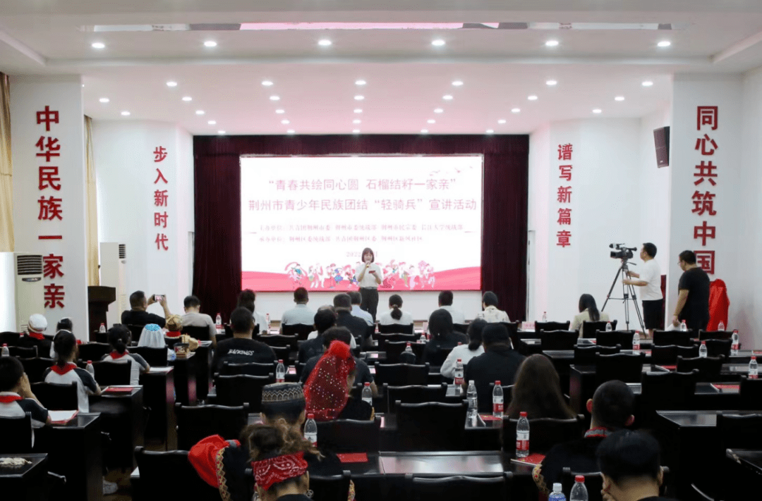 为贯彻落实中央、省统战工作会议精神和省青联第十四届全委会会议精神,铸牢中华民族共同体意识,促进荆州各族青少年交往交流交融,凝聚起共同成长进步、共同团结奋斗、共建和谐美丽幸福荆州的青春力量,团荆州市委联合市委统战部、市民宗委、伟德体育统战部共同举办“青春共绘同心圆 石榴结籽一家亲”荆州市青少年民族团结“轻骑兵”宣讲活动。